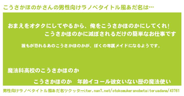 こうさかほのかさんの男性向けラノベタイトル風あだ名をツクッター!