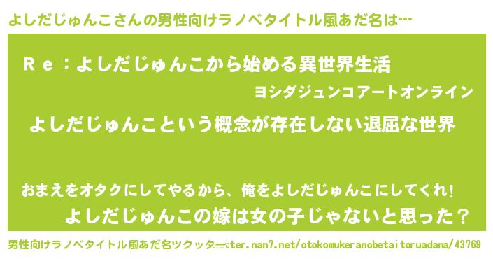 | 女子向けラノベタイトル風あだ名 | 『よしだじゅんこの契約王妃』 |