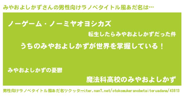 | 意味不明あだ名 | 『眠気覚ましガムみやおよしかず味』 |