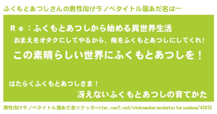 | 意味不明あだ名 | 『住所不定無職ふくもとあつし(85歳)』 |