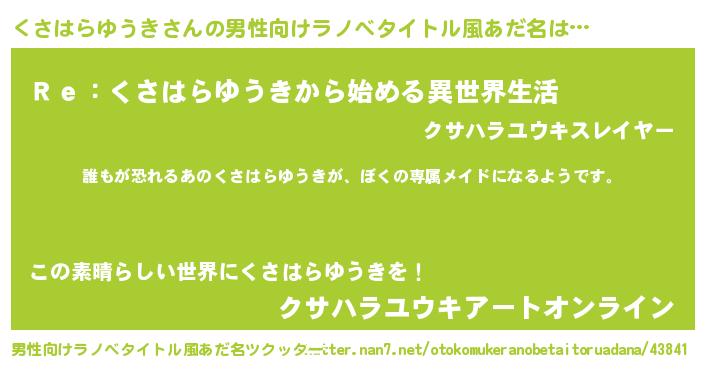 | 意味不明あだ名 | 『永久保存くさはらゆうき』 |