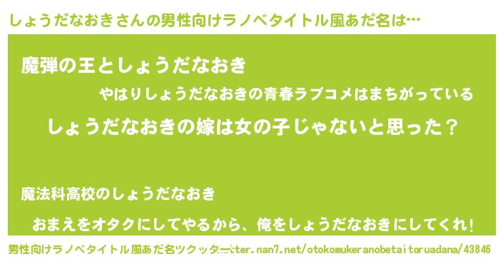 | 女子向けラノベタイトル風あだ名 | 『しょうだなおき様がみてる』 |