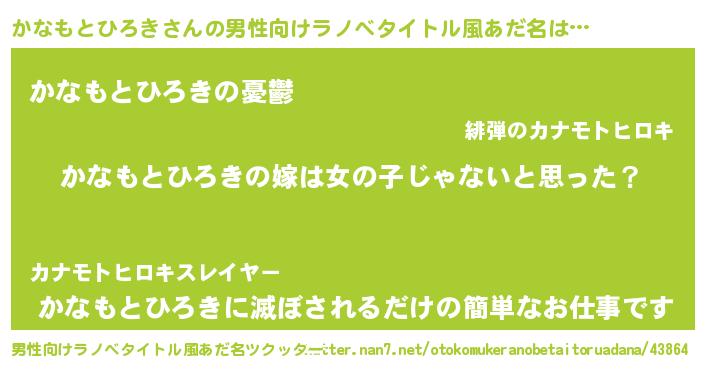 | ヒーロー風カッコイイあだ名 | 『天弓騎士カナ』『ネオカナモトヒロキ』 |