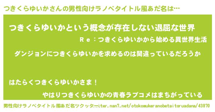 | 胡散臭い通販商品みたいなあだ名 | 『信頼と実績のネックレス…その名も「つきくらゆいか」』 |