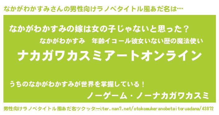 | 胡散臭い通販商品みたいなあだ名 | 『億万長者になれる霊験あらたかなお札…その名も「なかがわかすみ」』 |