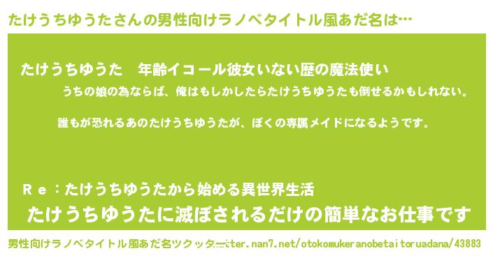 | 胡散臭い通販商品みたいなあだ名 | 『前代未聞の水素水…その名も「たけうちゆうた」』 |