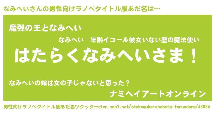 | 意味不明あだ名 | 『住所不定無職なみへい(89歳)』 |
