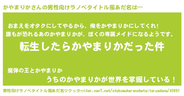 | 胡散臭い通販商品みたいなあだ名 | 『お金では代えられない隕石のかけら…その名も「かやまりか」』 |