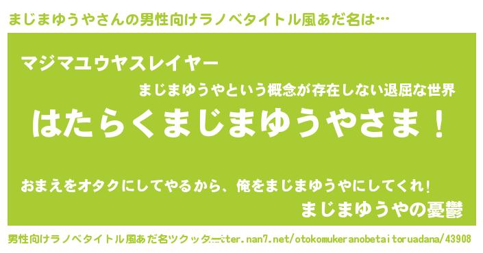 | 胡散臭い通販商品みたいなあだ名 | 『必ず成功する霊験あらたかなお札…その名も「まじまゆうや」』 |