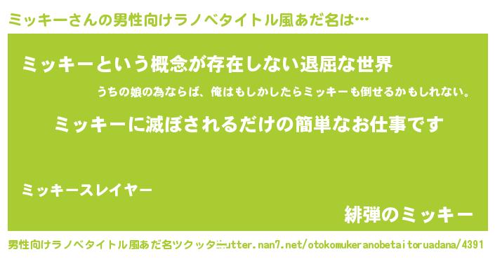 | 女子向けラノベタイトル風あだ名 | 『横柄ミッキーと宰相陛下』 |