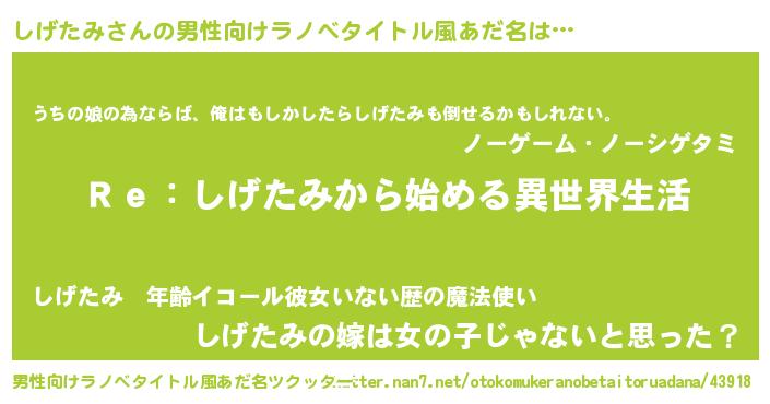 | ヘコむあだ名 | 『酢こんぶ』『しげっぺ』『しげにー』 |