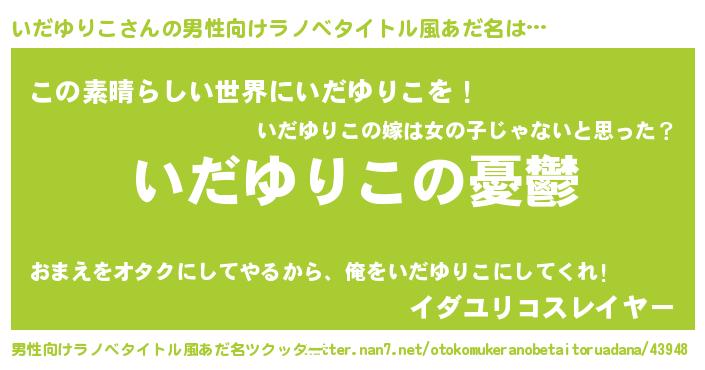 | 女子向けラノベタイトル風あだ名 | 『(仮)いだゆりこのやんごとなき事情』 |