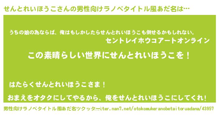 意味不明あだ名 | 『住所不定無職せんとれいほうこ(2歳)』 |