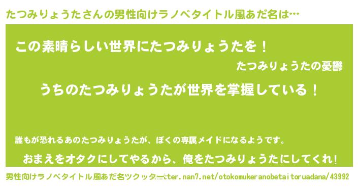 | 意味不明あだ名 | 『住所不定無職たつみりょうた(1歳)』 |