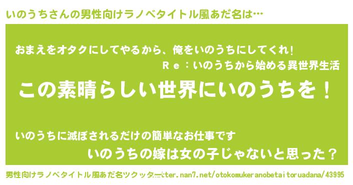| ヒーロー風カッコイイあだ名 | 『仮面イノダー』『正義の使者いのうち』 |