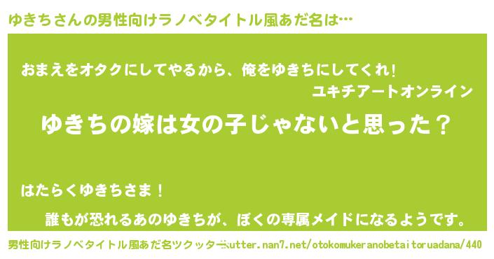 | 女子向けラノベタイトル風あだ名 | 『ゆきち様がみてる』 |