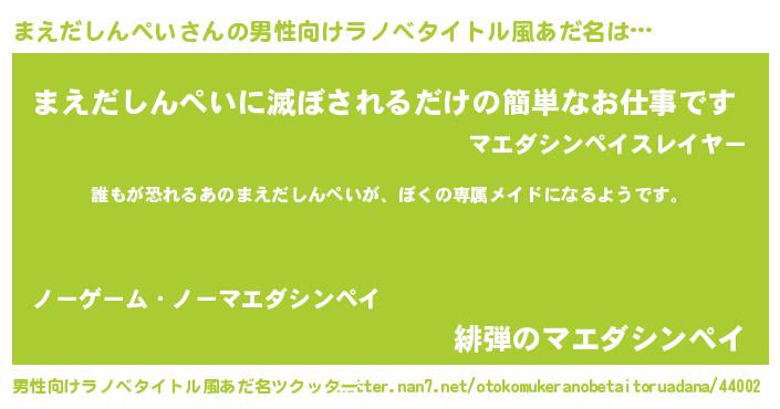 | 意味不明あだ名 | 『永久保存まえだしんぺい』 |