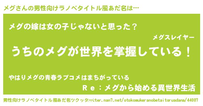 | 意味不明あだ名 | 『とにかく怪しいメグ』『自称メグ』 |