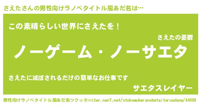 | ヘコむあだ名 | 『さえもー』『さえた(笑)』『さえを』 |