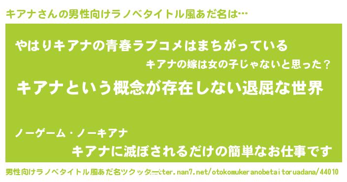 | 胡散臭い通販商品みたいなあだ名 | 『絶対に幸福をもたらす健康食品…その名も「キアナ」』 |