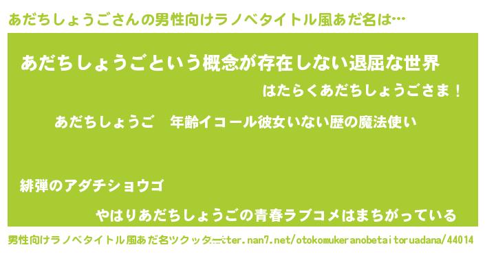 | 女子向けラノベタイトル風あだ名 | 『あだちしょうごの玉の輿計画!』 |