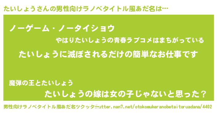 | 女子向けラノベタイトル風あだ名 | 『横柄たいしょうと宰相陛下』 |