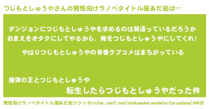 | 女子向けラノベタイトル風あだ名 | 『つじもとしゅうやの雑貨屋さん』 |
