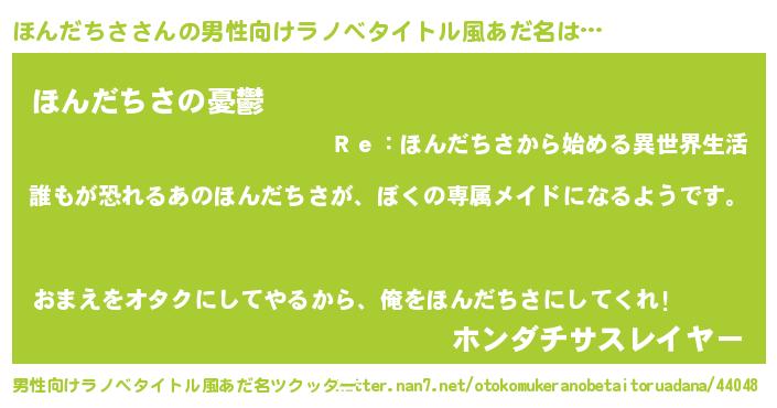 | ヘコむあだ名 | 『ほんだちさ(笑)』『ほんにー』 |