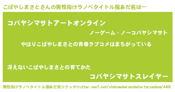 | 女子向けラノベタイトル風あだ名 | 『こばやしまさとの雑貨屋さん』 |