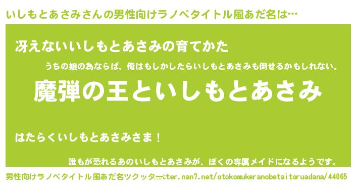 | 女子向けラノベタイトル風あだ名 | 『乙女ゲームの破滅フラグしかない悪役いしもとあさみに転生してしまった…』 |