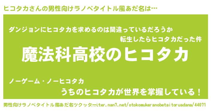 | 女子向けラノベタイトル風あだ名 | 『ヒコタカなんてお断りですっ。』 |