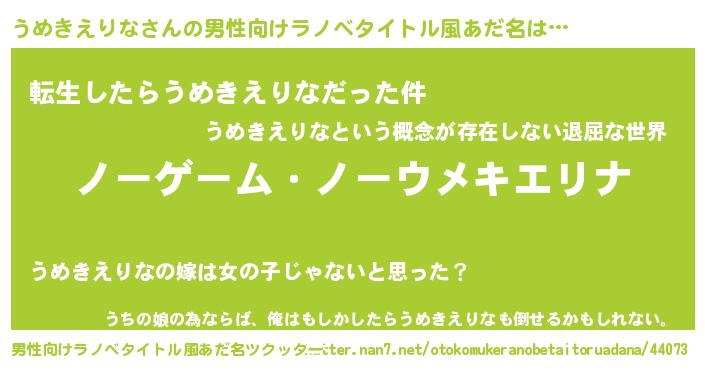 | 伝説のあだ名 | 『救世主となる錬金術士うめきえりな』 |