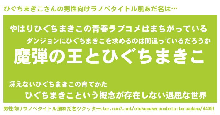 | 意味不明あだ名 | 『住所不定無職ひぐちまきこ(11歳)』 |