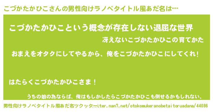 | 女子向けラノベタイトル風あだ名 | 『こづかたかひこ夫妻のなれそめ』 |