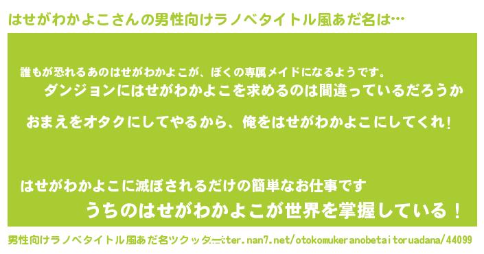 | ヘコむあだ名 | 『はせがわかよこ(苦笑)』『はせっ子』 |