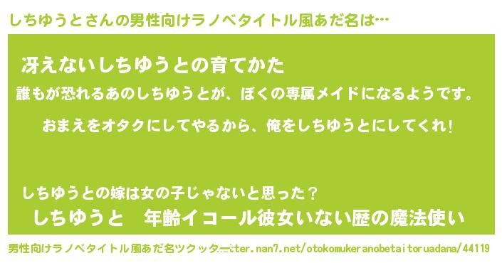 | ヘコむあだ名 | 『しちゆうと(笑)』『しちっちょ』 |