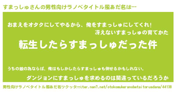 | 女子向けラノベタイトル風あだ名 | 『すまっしゅの玉の輿計画!』 |