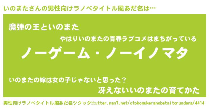 | 女子向けラノベタイトル風あだ名 | 『死神いのまたの再婚』 |