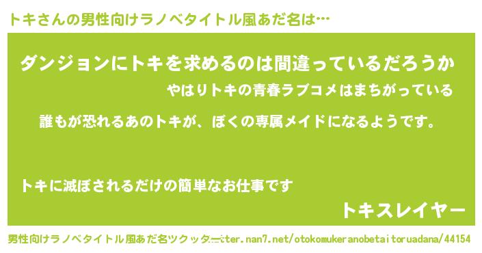 | ファンタジー風あだ名 | 『トキディッシュ』『ファントムトキス』 |