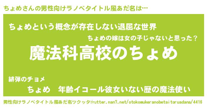 | 女子向けラノベタイトル風あだ名 | 『ちょめなんてお断りですっ。』 |