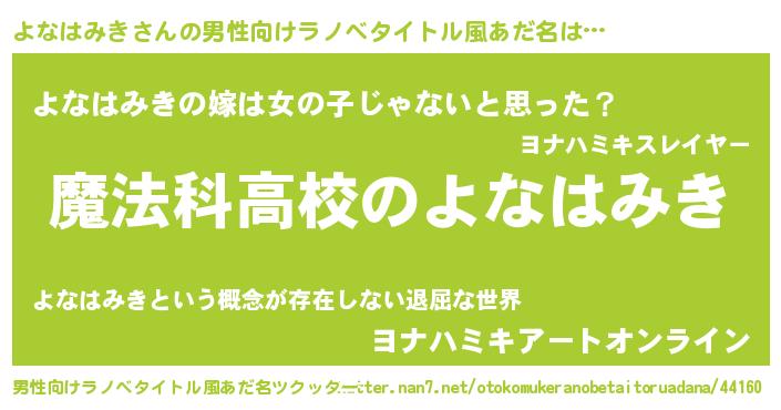 | 女子向けラノベタイトル風あだ名 | 『よなはみきなんてお断りですっ。』 |