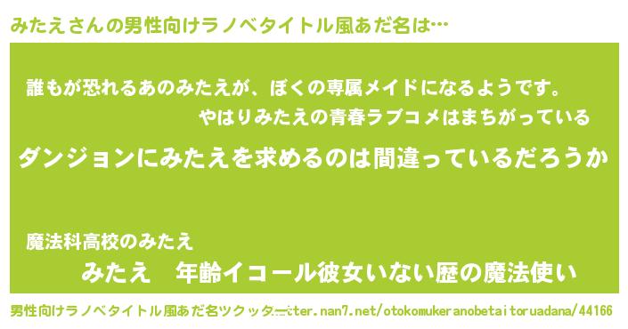 | 意味不明あだ名 | 『とにかく怪しいみたえ』『自称みたえ』 |
