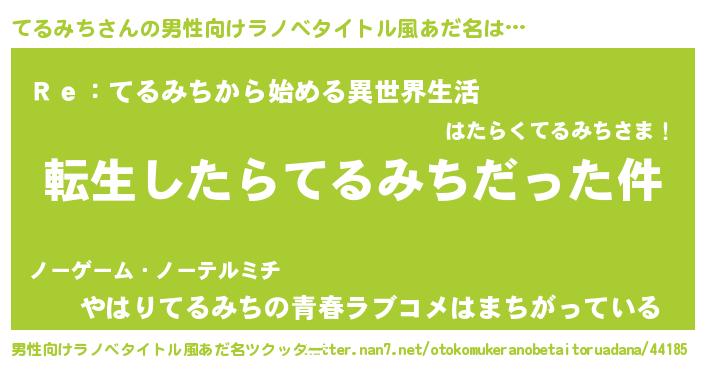 てるみちさんの男性向けラノベタイトル風あだ名をツクッター!