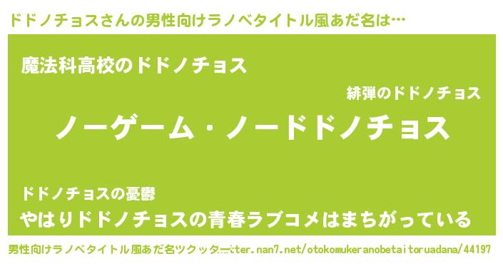 | 女子向けラノベタイトル風あだ名 | 『死神ドドノチョスの再婚』 |
