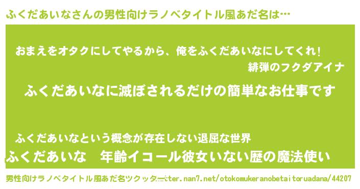 | 伝説のあだ名 | 『救世主となる錬金術士ふくだあいな』 |