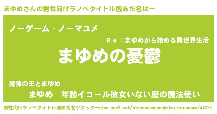 | 女子向けラノベタイトル風あだ名 | 『(仮)まゆめのやんごとなき事情』 |
