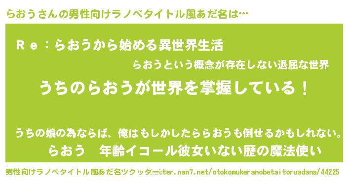 | 意味不明あだ名 | 『自称らおう』『つくし科らおう属』 |