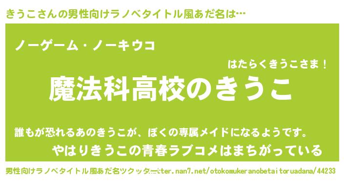| ヒーロー風カッコイイあだ名 | 『超時空戦士キウコ』『天空の使者きうこ』 |