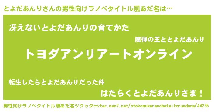 | 肩書あだ名 | 『とよだあんり御曹司』 |