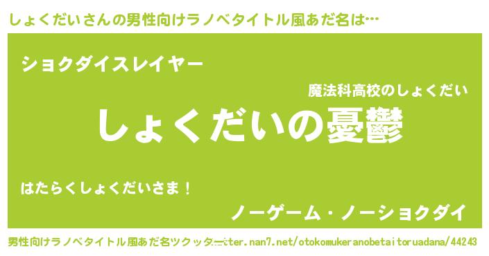 | ヒーロー風カッコイイあだ名 | 『スーパーショクダイ』『暗黒騎士ショ』 |